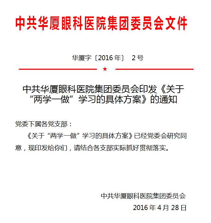 中共華廈眼科醫(yī)院集團(tuán)委員會關(guān)于“兩學(xué)一做”學(xué)習(xí)的具體方案