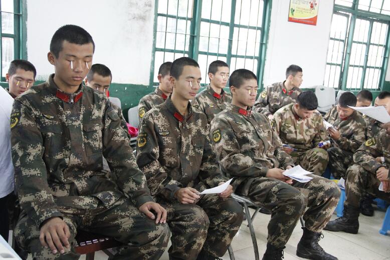 武警排隊(duì)接受眼睛檢查