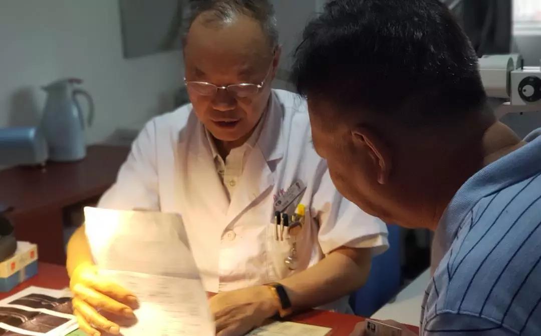 一年后,參加過那場講座的退休勞模老林,發(fā)現(xiàn)自己疑似視網(wǎng)膜脫離,便找吳國基診察治療。手術(shù)恢復(fù)期剛過,這位勞模的視力恢復(fù)到了1.0,他特地找到了在診室坐診的吳國基,表達了自己的感謝,“生說我恢復(fù)的很好,還說我來得及時,不然效果沒這么好,說我比一些年輕人都懂得多。這當(dāng)然,我去年聽過吳院長的講座,他講了視網(wǎng)膜脫離,記得很清楚,出現(xiàn)的情況跟吳院長講的一樣,我一想這不得了,必須去醫(yī)院找吳院長做手術(shù)”。