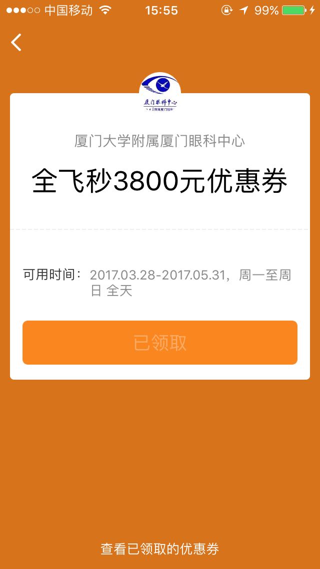 全飛秒激光近視手術(shù)電子優(yōu)惠券領(lǐng)取方式