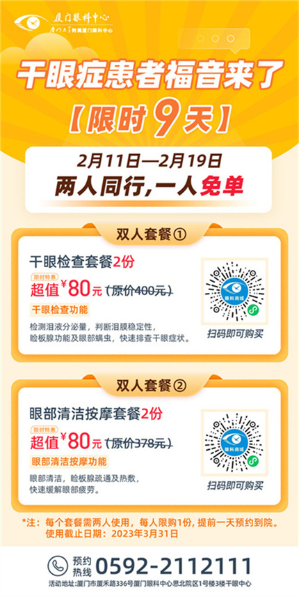 ① 2月11日-19日,80元可購(gòu)2份原價(jià)400元的干眼綜合檢查;