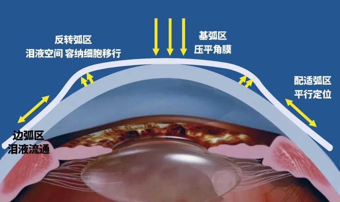 2、OK鏡采用了反幾何設(shè)計(jì),根據(jù)角膜形態(tài)做定制。