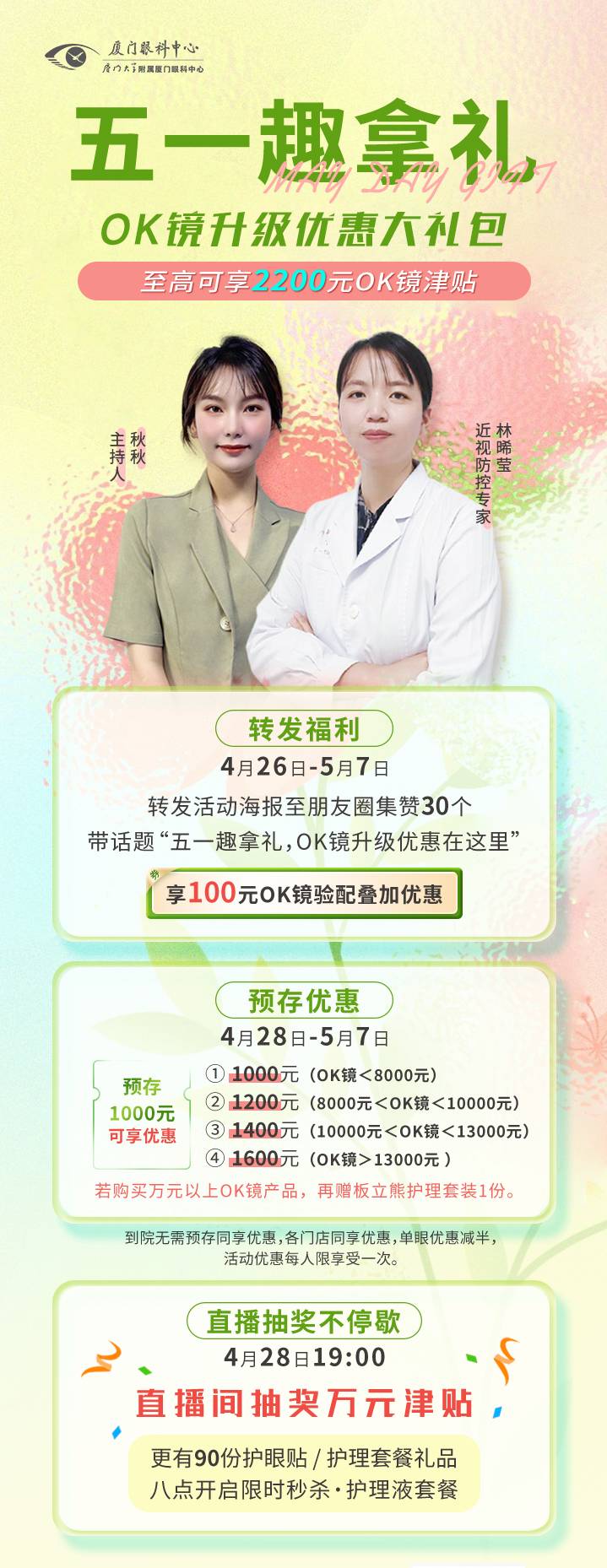 五一趣拿禮!廈門(mén)眼科中心OK鏡優(yōu)惠至高2200元
