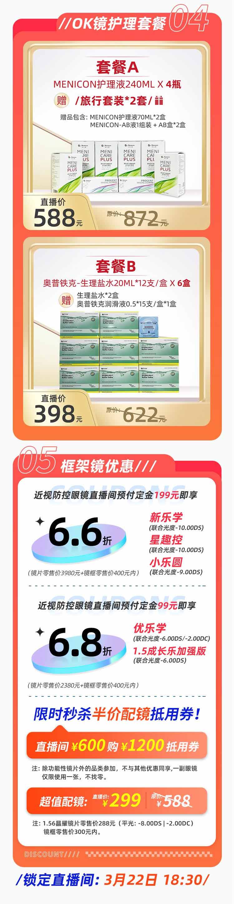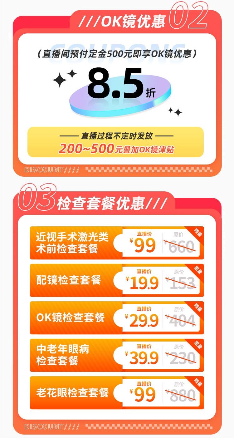 直播間預付定金500元,即享OK鏡85折驗配優(yōu)惠;