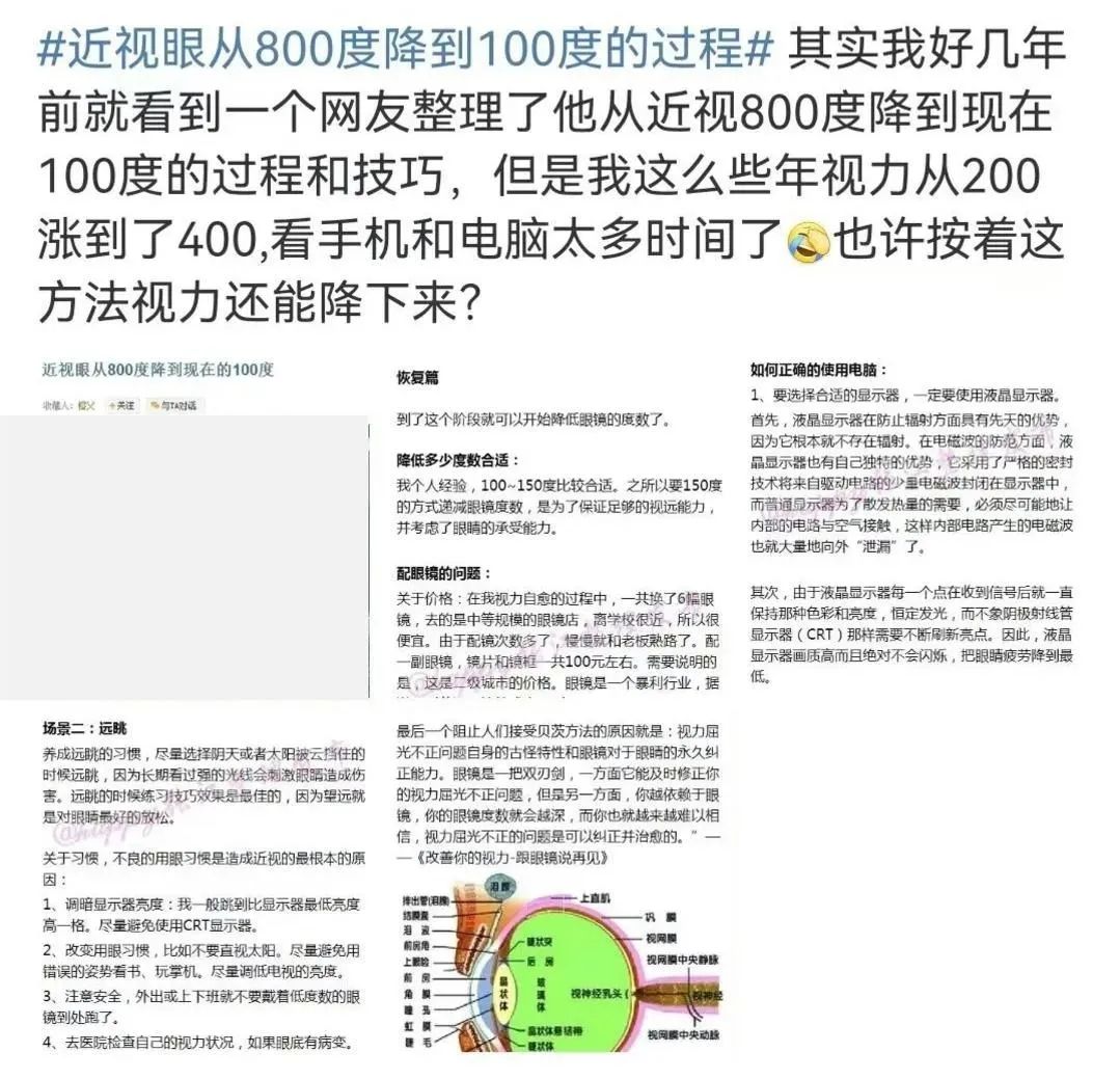 守護(hù)光明,溫暖助力【文章導(dǎo)讀】前陣子 #近視眼從800度降到100度的過(guò)程# 高掛熱搜,引發(fā)眾多關(guān)注 話題中 博主分享了一位25歲近視患者 通過(guò)一套視力恢復(fù)操 零成本從800度降低到100度的過(guò)程 文中內(nèi)容看似干貨滿滿、很