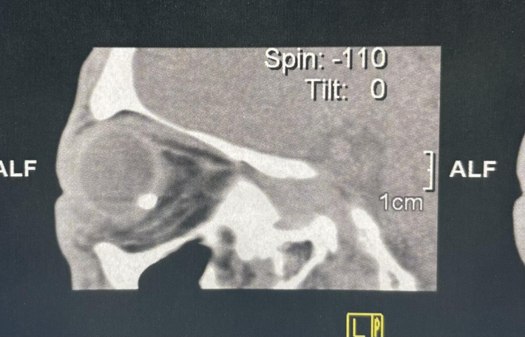 送抵廈門眼科中心時,陳先生左眼已完全喪失視力,還伴有明顯的枕后疼痛癥狀,情況十分危急。當(dāng)日急診醫(yī)生立即為其展開全面檢查,檢查結(jié)果令人揪心:入眼異物位于靠近眼球后壁的眼窩深處,不僅緊鄰顱腦,還與眼底視神經(jīng)“近在咫尺”。這個特殊位置讓手術(shù)團(tuán)隊面臨嚴(yán)峻挑戰(zhàn),如果在取出過程中出現(xiàn)任何意外,損傷視神經(jīng),陳先生的左眼將面臨永久性失明的嚴(yán)重后果。