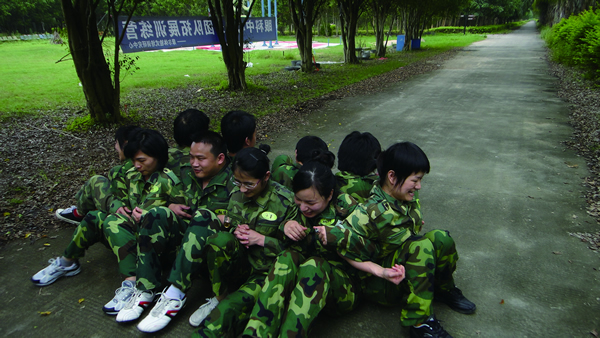 一開始大家沒有掌握到這項(xiàng)訓(xùn)練實(shí)質(zhì)上的意義,只是一味想著自己要站起來,結(jié)果無論是我們的“勇者無敵隊(duì)”還是“必勝莊園隊(duì)”都以失敗告終。要么剛站起來一半,就被旁邊的伙伴拉下去了;要么根本就找不到支點(diǎn),沒辦法起來;要么已經(jīng)站起來了,還有伙伴沒有同時(shí)起來,仍然視為失敗。