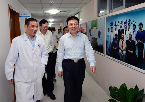 近日,省委常委、市委書記王蒙徽前往廈門眼科中心,看望了醫(yī)療團(tuán)隊和接受眼角膜捐贈的康復(fù)患者。市領(lǐng)導(dǎo)鐘興國、國桂榮,衛(wèi)計委楊叔禹、洪豐穎、王挹青等領(lǐng)導(dǎo)隨同慰問。