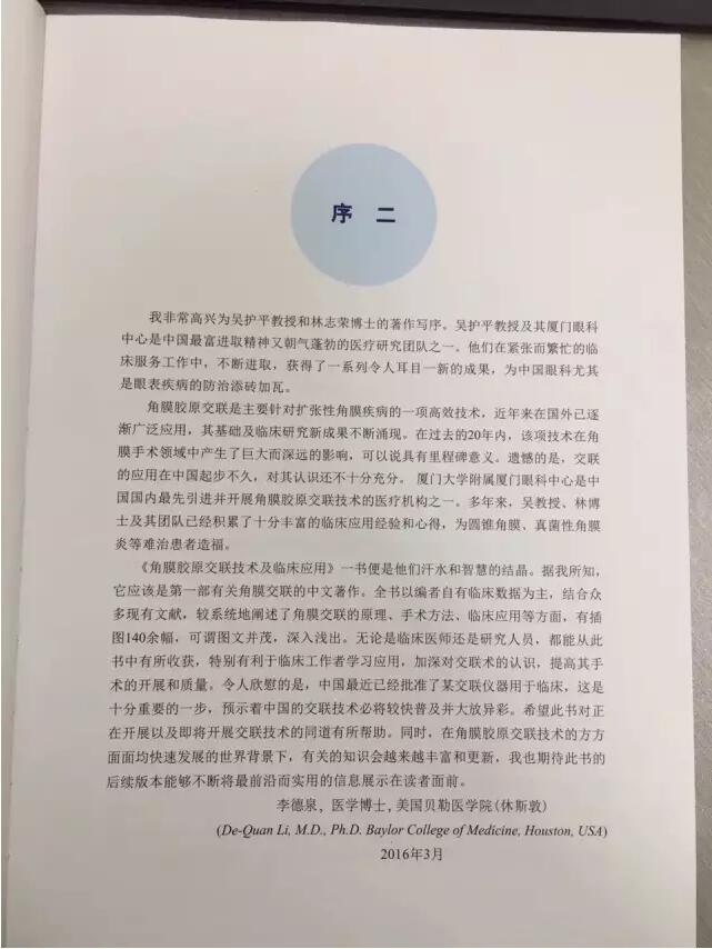 【文章導讀】由廈門眼科中心吳護平教授、林志榮博士后主編,中國干眼之父劉祖國教授主審的《角膜膠原交聯(lián)技術(shù)及臨床應用》出刊啦,7月上旬將與大家正式見面啦! 《角膜膠原交聯(lián)技術(shù)及臨床