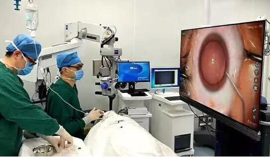 張淳副院長(zhǎng)正在實(shí)施3D導(dǎo)航微創(chuàng)ICL植入術(shù)