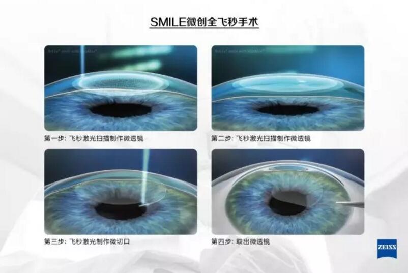 全飛秒SMILE手術(shù)(飛秒激光小切口透鏡取出術(shù)),是目前主流的一種微創(chuàng)且安全有效的角膜屈光手術(shù)。采用飛秒激光在角膜上連續(xù)掃描兩層,形成一個微透鏡,然后經(jīng)一道2-4毫米的微小切口,輕輕分離透鏡,用特殊的微鑷取出即完成手術(shù)。