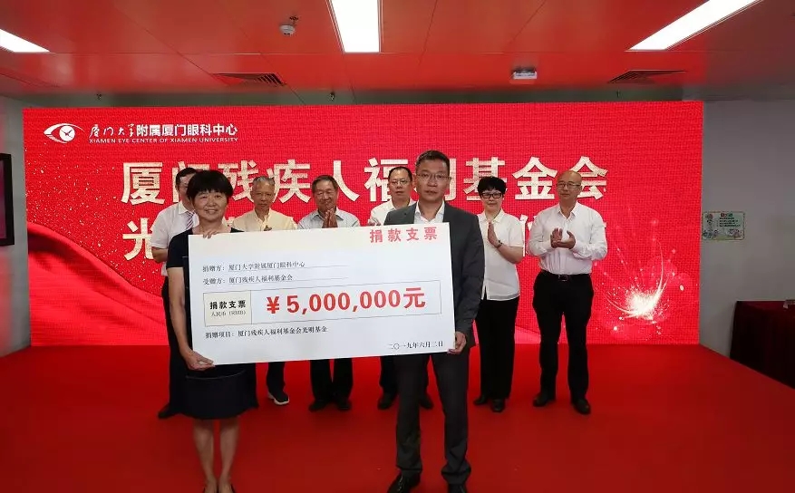 五緣院區(qū)開(kāi)業(yè)儀式上,廈門(mén)眼科中心再次將“光明的信仰”傳遞——為廈門(mén)市殘聯(lián)捐款500萬(wàn)元,成立專(zhuān)項(xiàng)基金,用于視力殘疾預(yù)防、眼科手術(shù)救助、盲人協(xié)會(huì)活動(dòng)等。