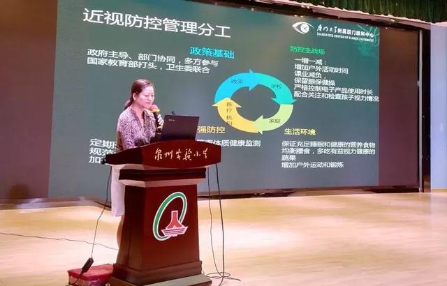 泉州市教育局陳軍宣副局長出席活動并講話,她指出目前兒童青少年不斷惡化的近視問題已經(jīng)成為全社會共同關(guān)注的社會話題。教育部等8部門印發(fā)了《綜合防控兒童青少年近視實施方案》(以下簡稱《實施方案》)“防控兒童青少年近視需要政府、學(xué)校、醫(yī)療衛(wèi)生機(jī)構(gòu)、家庭、學(xué)生等各方面共同努力,需要全社會行動起來,共同呵護(hù)好孩子的眼睛。”