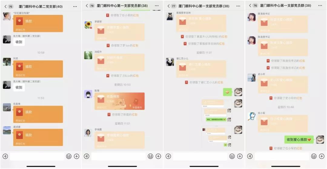 全民抗疫情,黨員當先鋒。黨員積極響應讓黨旗在戰(zhàn)“疫”中高高飄揚——愛心捐款活動。黨委書記陳逸恬帶頭獻出愛心,廈門眼科中心第1黨支部書記潘美華、第二黨支部書記張美嫦代表支部黨員將愛心捐款放入捐款箱內(nèi),為抗疫行動貢獻力量。疫情期間,為避免人員密集,黨員采用線上捐款的形式,涓涓細流匯成愛的海洋,短短一個小時內(nèi),黨員愛心捐款數(shù)萬元。特殊時期的愛心捐款,蘊涵著濃厚的精神價值,這是每一個共產(chǎn)黨員對黨的號召的響亮回應。