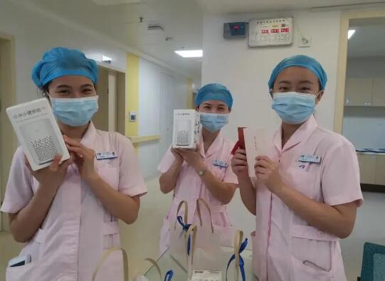 護(hù)理部主任許春麗表示:“今年因?yàn)橐咔榈脑?,護(hù)士們的工作壓力會(huì)更大,特別選擇了小愛(ài)同學(xué)智能機(jī)器人藍(lán)牙音響作為禮物,讓護(hù)士們?cè)诠ぷ髦喔玫姆潘尚那椤?rdquo;