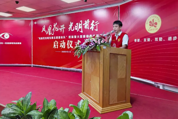 眼科醫(yī)院集團(tuán)黨委書記、鳳凰花“光明先鋒”志愿服務(wù)隊(duì)隊(duì)長(zhǎng)陳逸恬,廈門眼科中心執(zhí)行總經(jīng)理姚鄭玲玲,廈門眼科中心運(yùn)營總監(jiān)王劍鋒,廈門眼科中心眼表及角膜病??粕绦衩舨┦孔鳛橹驹刚叽韰⑴c儀式。