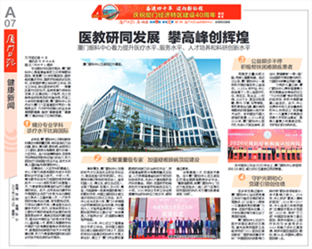恰逢廈門經(jīng)濟(jì)特區(qū)隆重慶祝建設(shè)40周年,乘著改革開(kāi)放的東風(fēng),廈門眼科中心與特區(qū)同頻共振,著力提升醫(yī)療水平、服務(wù)水平、人才培養(yǎng)及科研創(chuàng)新水平。廈門日?qǐng)?bào)、廈門晚報(bào)、海西晨報(bào)、海峽導(dǎo)報(bào)等媒體進(jìn)行專題報(bào)道。