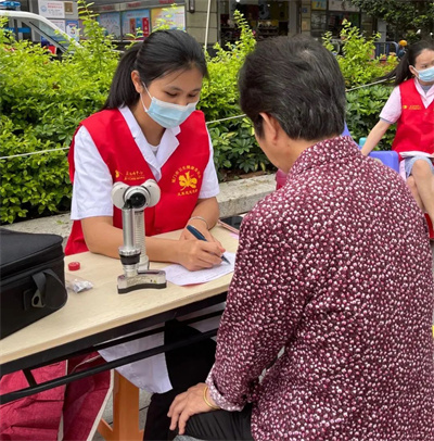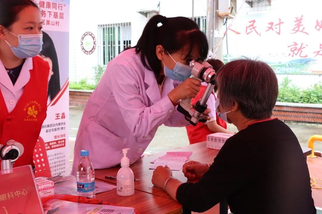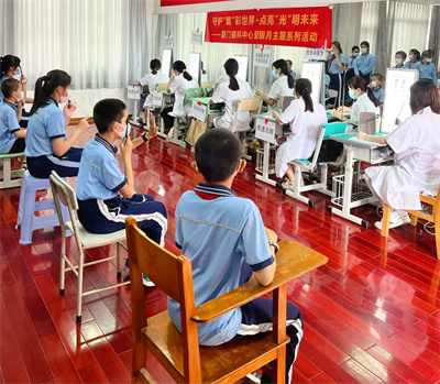 建黨節(jié)期間,項(xiàng)目聯(lián)合廈門大學(xué)附屬廈門眼科中心黨總支、鳳凰花光明先鋒志愿服務(wù)隊(duì)組織黨員志愿者代表,來到同安區(qū)蓮花鎮(zhèn)蓮花村新時(shí)代文明實(shí)踐站、翔安區(qū)金海街道浦西社區(qū)新時(shí)代文明實(shí)踐站,為當(dāng)?shù)鼐用袢罕娝腿チ伺牡难劢】岛Y查及義診活動(dòng)。