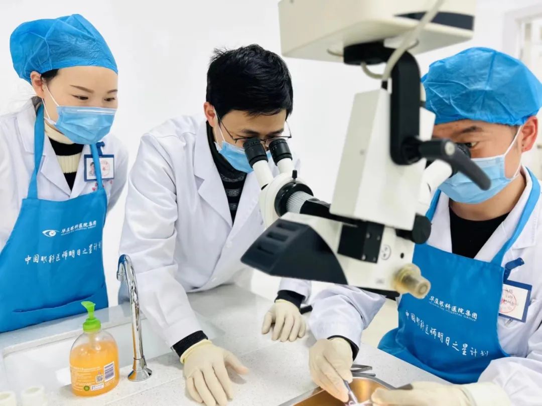 ▲修陽暉(中)帶教中國眼科明日之星學員進行動物眼顯微手術(shù)操作