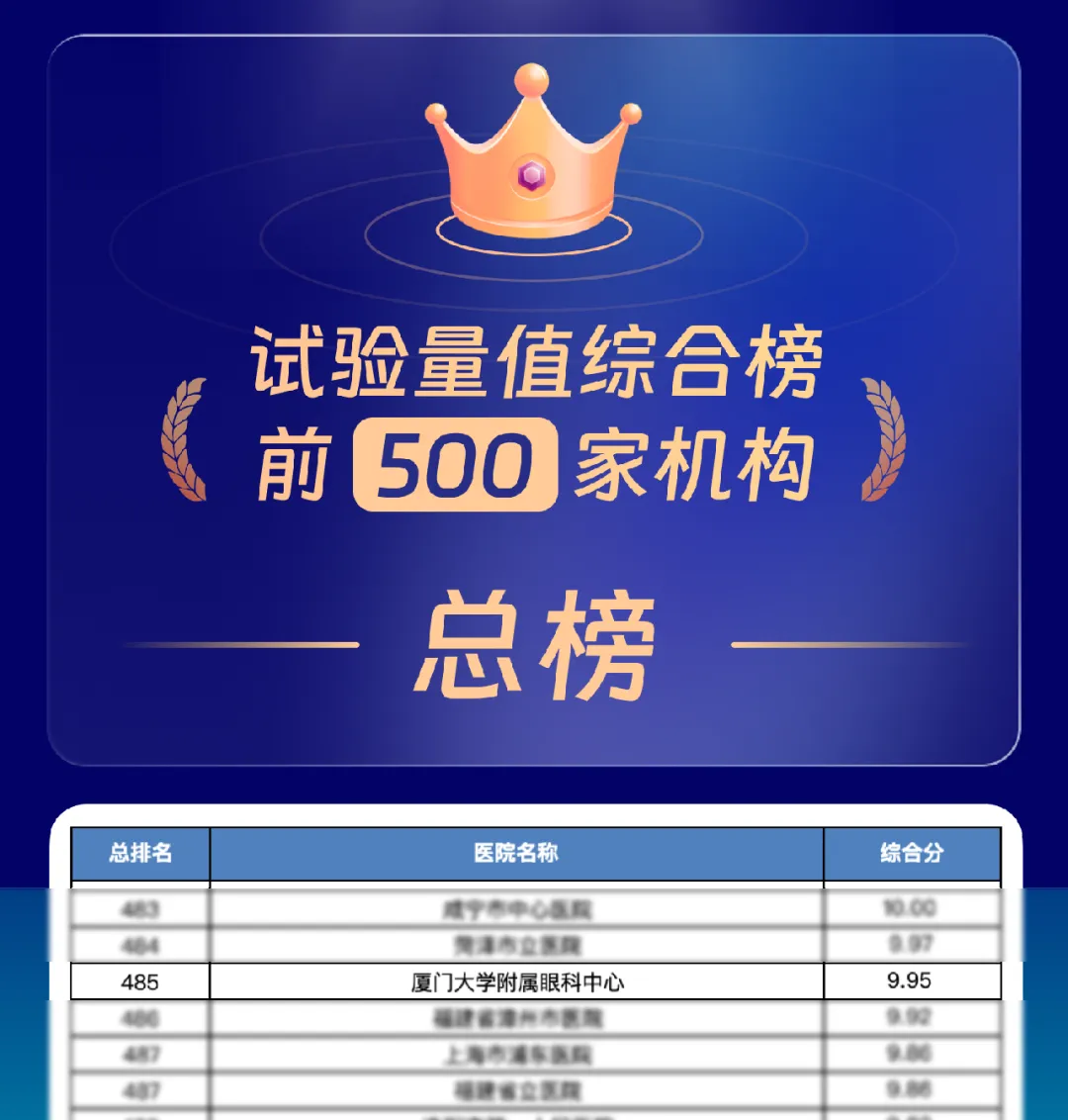 全國第3!GCP權威榜單公布,廈門眼科中心連續(xù)多年領跑!
