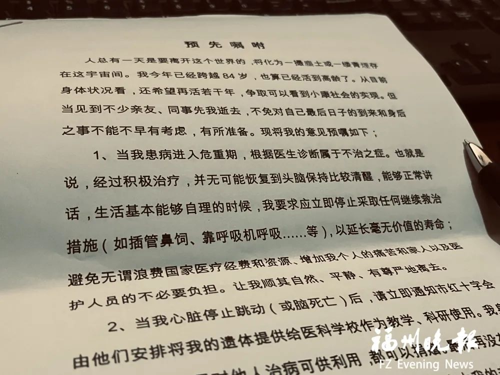 他也明確捐獻遺體意愿。“當我心臟停止跳動(或腦死亡)后,請立即通知市紅十字會,由他們安排將我的遺體提供給醫(yī)科學校作為教學、科研使用。我身體上任何器官如果對他人治病可供利用,都可以捐贈。如果再沒有用處,可以火化處理。”