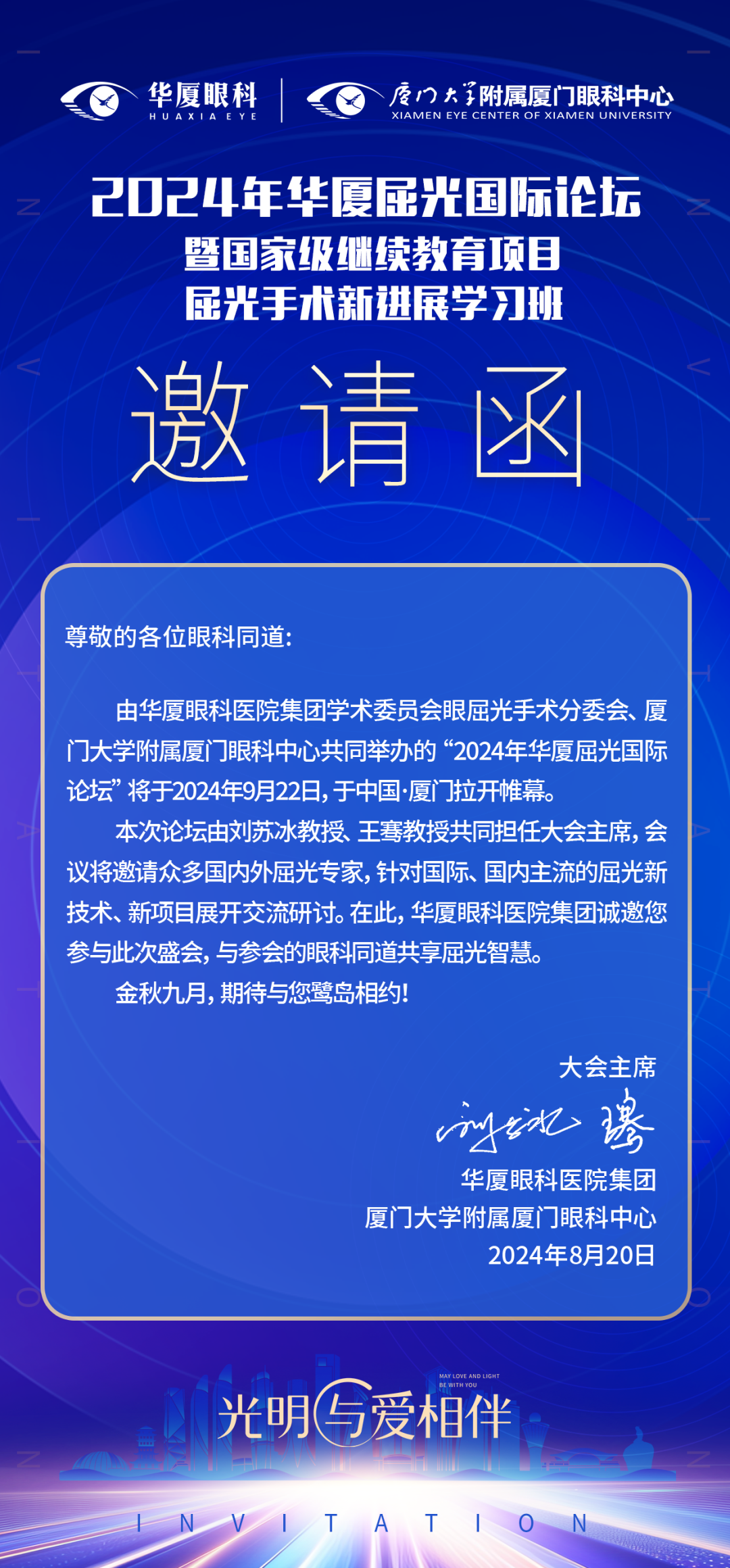 在此,華廈眼科醫(yī)院集團學術委員會眼屈光手術分委會、廈門大學附屬廈門眼科中心誠邀各位眼科同道參加本次盛會。