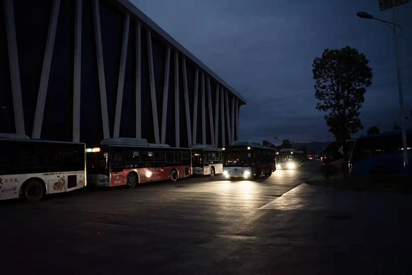 賽事服務(wù)車輛駛出公交場站