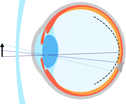周邊離焦鏡片通過(guò)將投射在視網(wǎng)膜后面周邊的焦點(diǎn),移到視網(wǎng)膜上或視網(wǎng)膜前方,我們稱(chēng)之為聚焦或周邊近視性離焦: