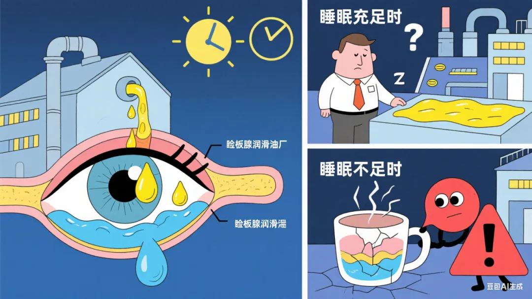 醫(yī)生會做2個關(guān)鍵檢查:瞼板腺成像(看“潤滑油廠”有沒有堵)、PSQI 量表(評估睡眠質(zhì)量),針對性治療,比如瞼板腺按摩、干眼 SPA、強脈沖光治療(OPT),嚴重的還會結(jié)合失眠干預(yù),雙管齊下。