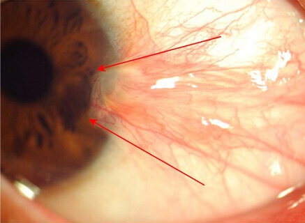 翼狀胬肉一般位于瞼裂區(qū)角膜緣的附近,并且會不斷的向角膜侵入,肉眼就能看得出來,因其形態(tài)與昆蟲的“翅膀”相似而得名。