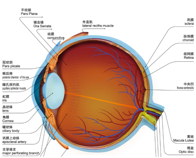 視網(wǎng)膜脫離(retinal detachment)是視網(wǎng)膜神經(jīng)上皮層與色素上皮層之間的分離。正常時,兩層之間除在視盤邊緣與鋸齒緣處有緊密連接外,其余部分需依賴色素上皮細(xì)胞微絲狀突觸包繞感光細(xì)胞外節(jié),以及黏多糖物質(zhì)的黏合而疏松地附著在一起,視網(wǎng)膜才能發(fā)揮其生理功能。脫離部分的視網(wǎng)膜無法感知光刺激,導(dǎo)致視力下降甚至失明。